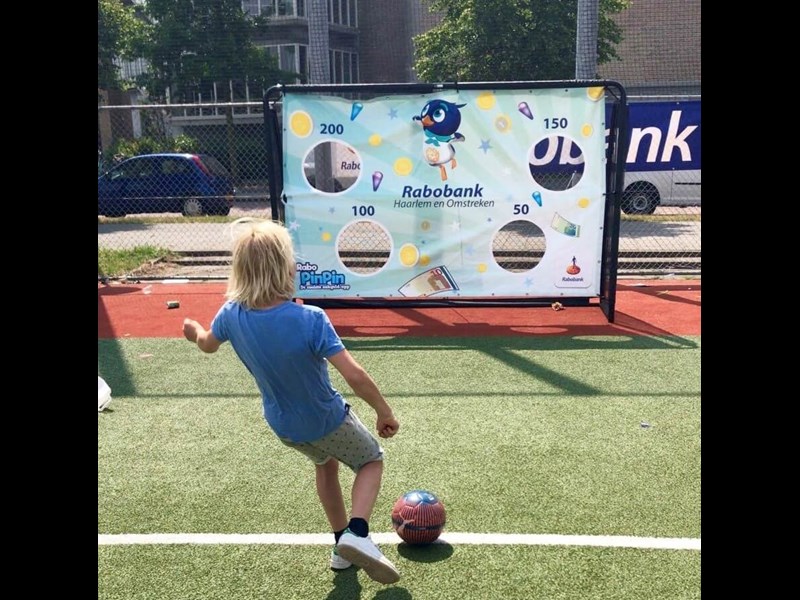 We design in order of Rabobank their own Promotional business target for you, which you can hang in the included goal in the total package! If you are afraid of a broken shop window, a softball offers the solution. Gift shooting, Prize shooting or discount shooting everything is possible!