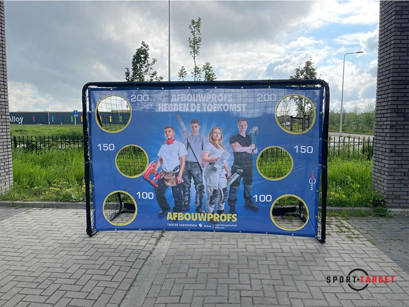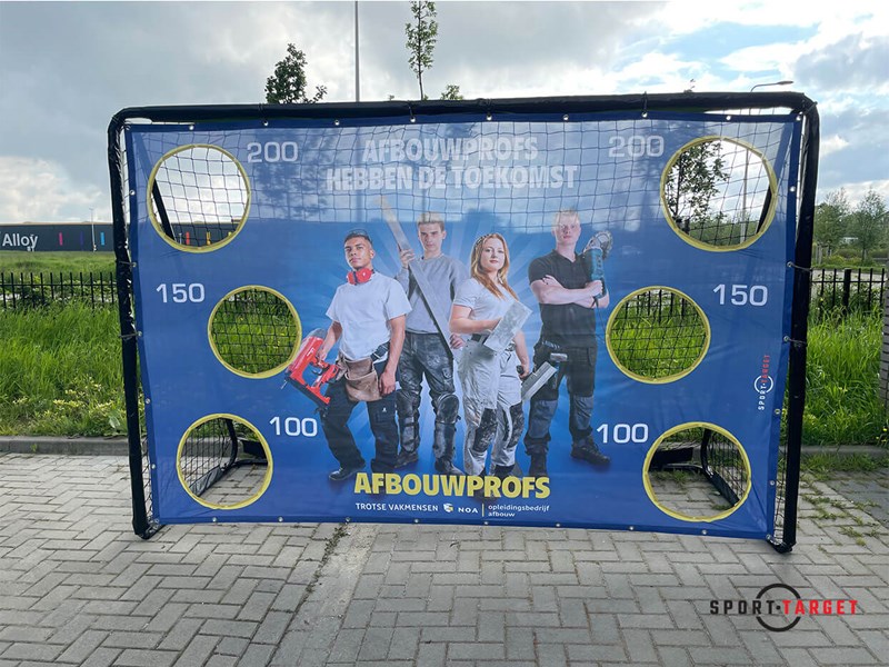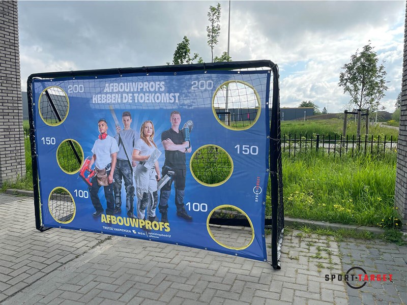 Commissioned by Training Company NOA, Sporttarget supplied the promotional sport target. For the exhibition presentation, sportspromo supplied a goal with soccer target with its own design.