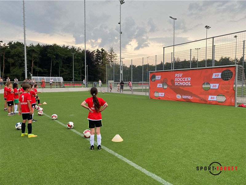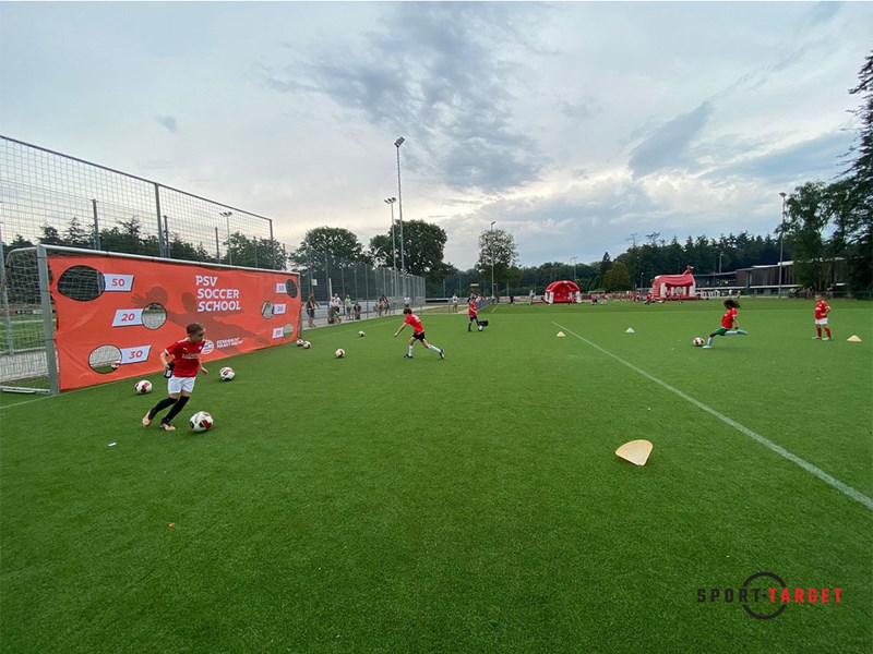 PSV now has a custom design Football Target with the holes and scoring according to your wishes for fun training. A fantastic advertisement for PSV Soccer Schools and PSV on Tour.
