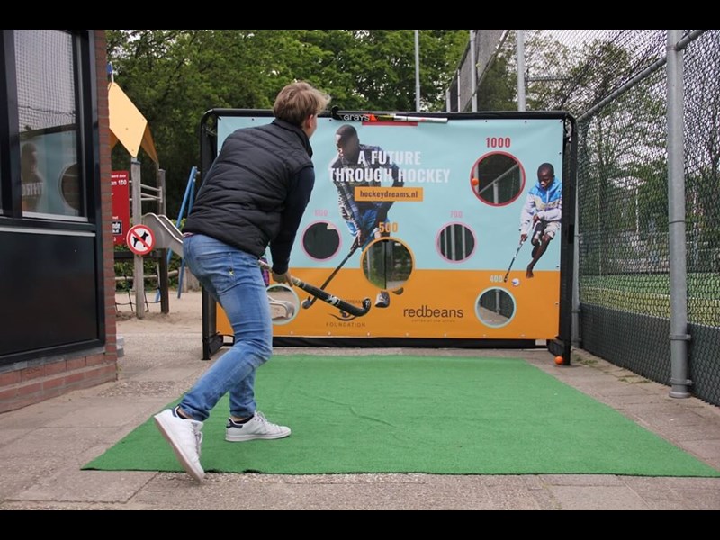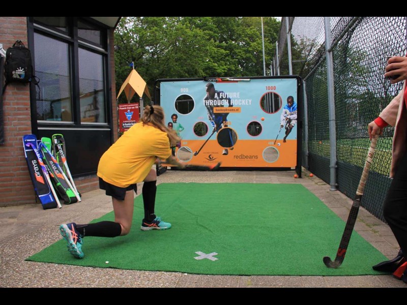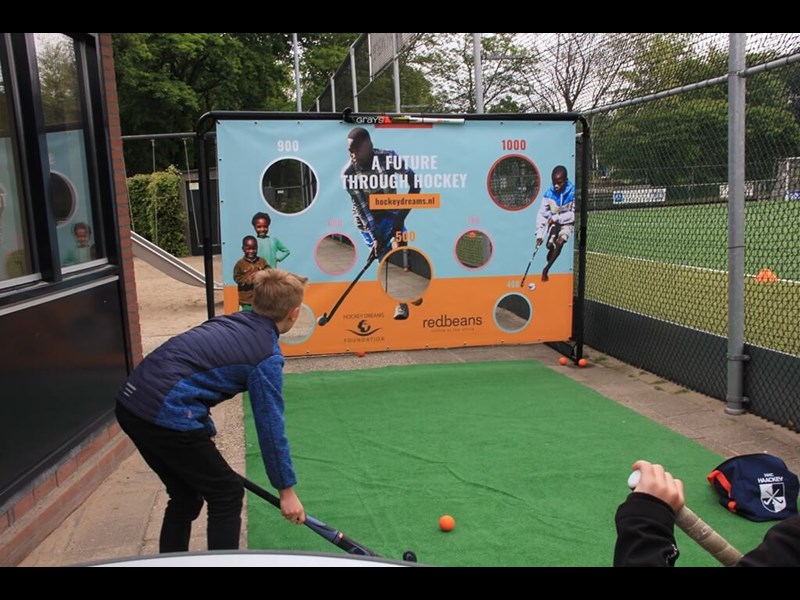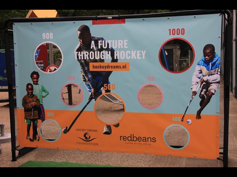 Sportspromo supplied a Promotional hockey hole cloth for Redbeans and Hockey Dreams Foundation. This hole cloth is the third design in the promotional goal supplied by Sportspromo, which is easy to build at any location. The hockey hole cloth is hung at clinics and for promotion at events and sports days.