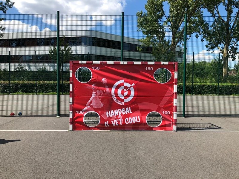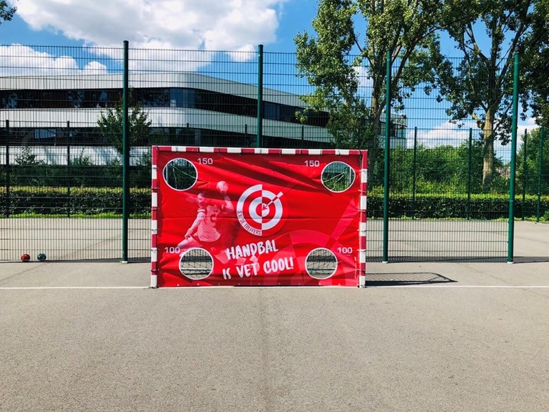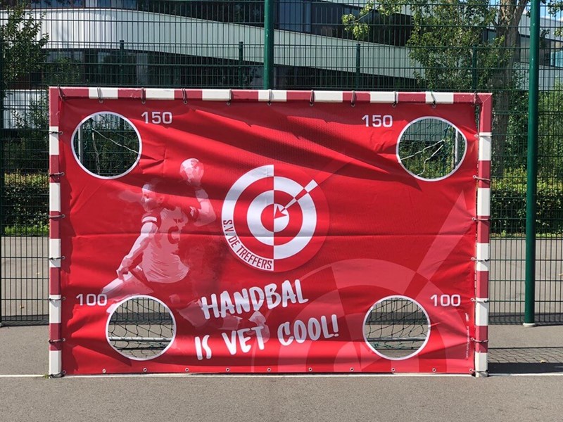In order of handball club HV Treffers we were allowed to design a Handball sports hole cloth. HV Treffers is going to use her hanball hole cloth as a game activity, for promotional purposes and during training!
