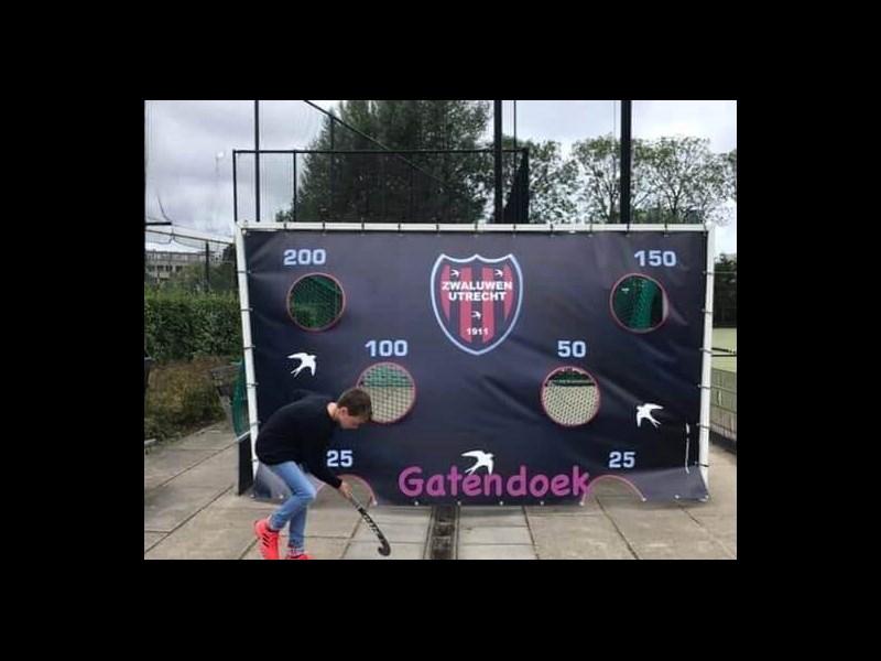 Het sportgatendoek van Zwaluwen Utrecht 1911 werd door Sportspromo gerealiseerd in opdracht van de Hockeyvereniging voor hun activiteiten als sportieve promotie. Het hockeysportgatendoek met eigen ontwerp waaronder eigen logo en wensen mochten wij ontwerpen en leveren aan de vereniging. Een leuk spel element met uiteraard een extra leuke promotie voor de vereniging.