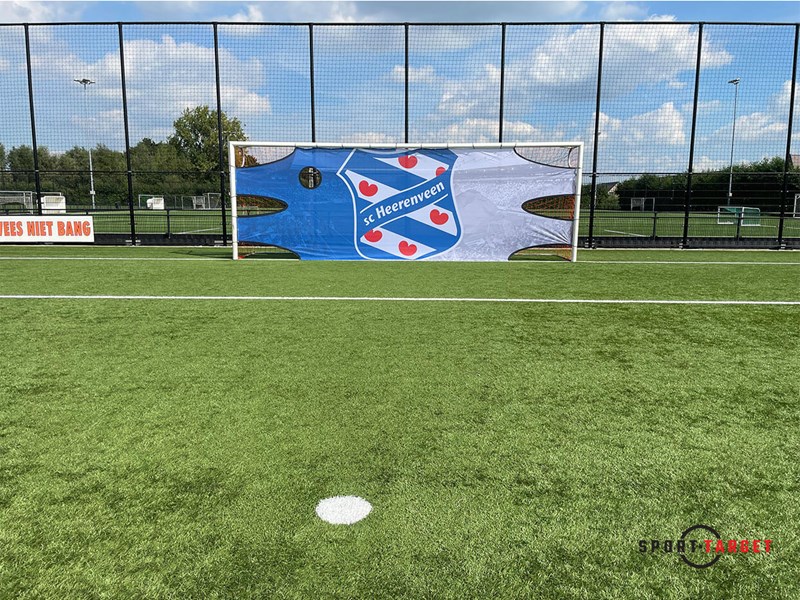 Sporttarget.nl uses two sizes for the Traintarget PRO. For a pupil goal (junior) 5m x 2m and for a senior goal (senior) 7.44m x 2.44m.