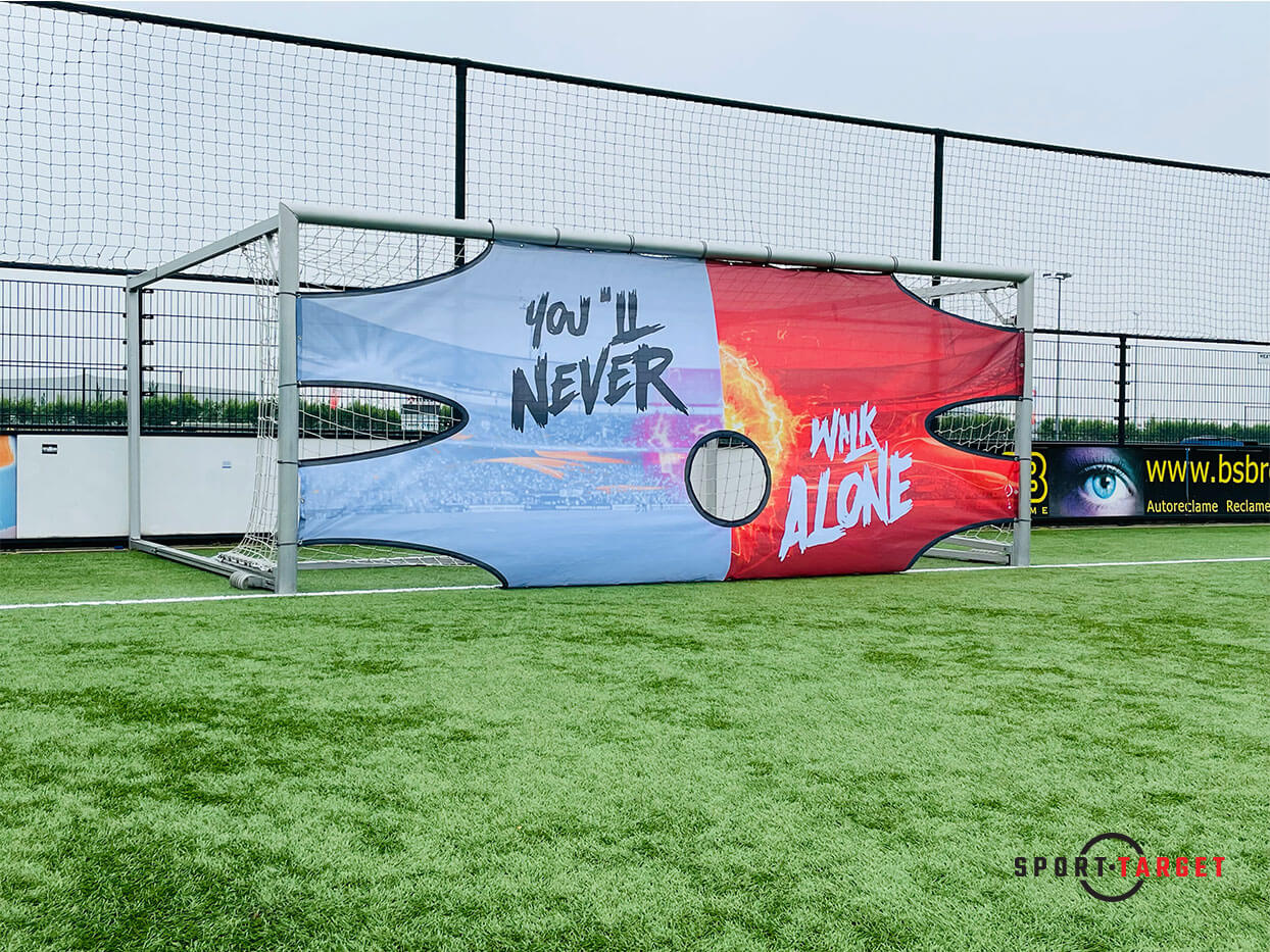 Our custom design Soccer Traintarget PRO comes standard in two sizes. For a pupil goal of 5m x 2m and a senior goal of 7.32m x 2.44m.
