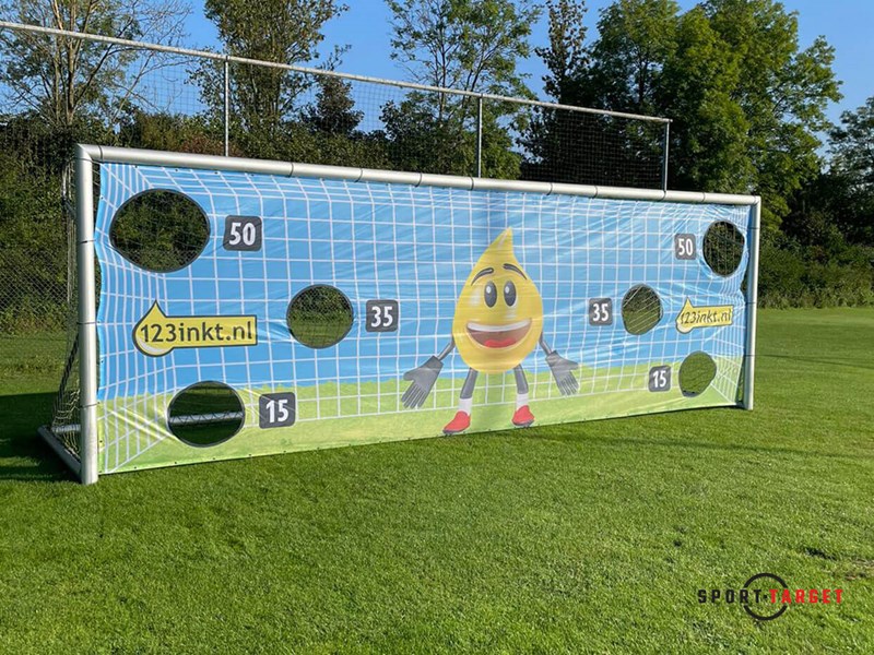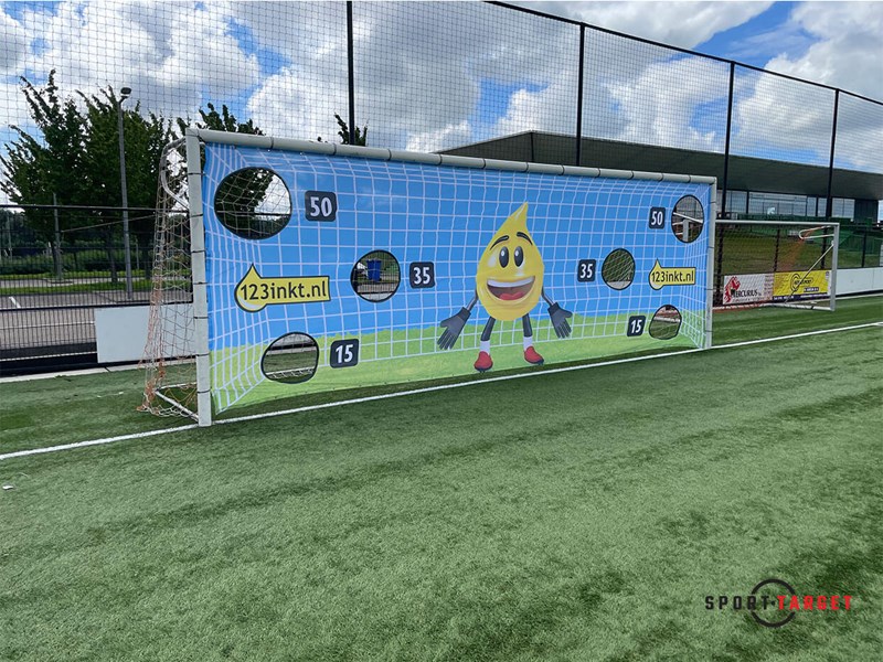 123Inkt heeft nu een custom ontwerp Voetbal Target met de gaten en puntentelling naar wens om leuk op te kunnen trainen. Een fantastische reclame voor 123 inkt op en rond de velden.