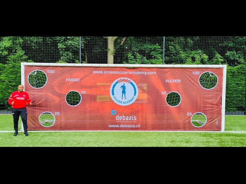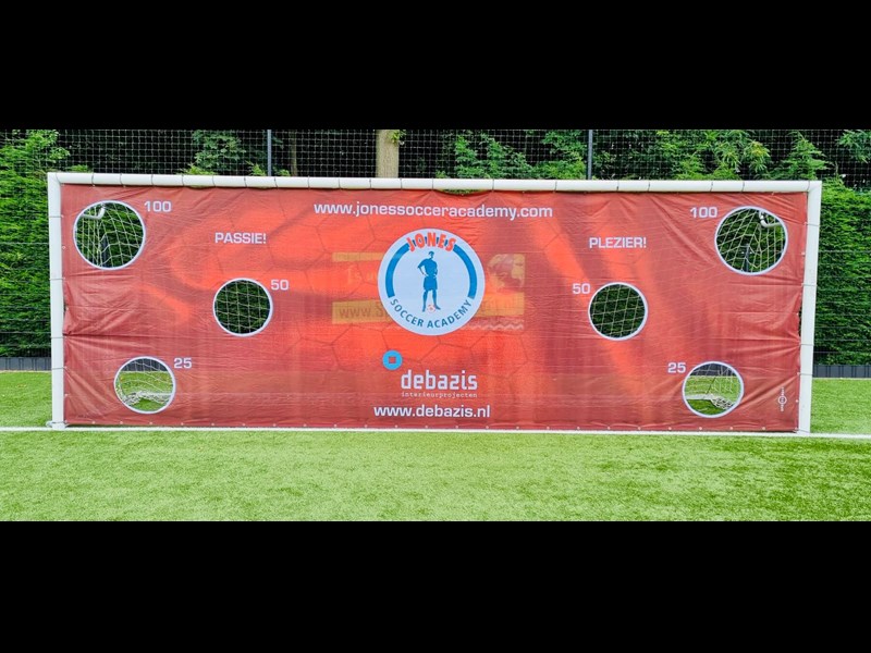 Voor Jones Soccer Academy realiseerden wij het ontwerp en de levering van het Sportgatendoek. Kijk voor het coole design en perfecte promotie als spelelement voor de trainingen.