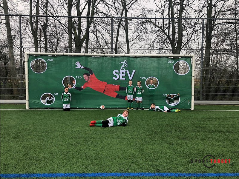 Voetbalvereniging Sev Leidschendam heeft een eigen ontwerp Soccer Target met de gaten en puntentelling naar wens om leuk op te kunnen trainen. Daarnaast een uitstekend spelelement voor de jeugd en activiteiten!