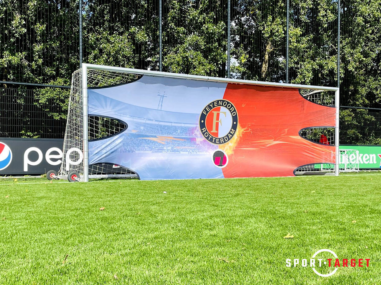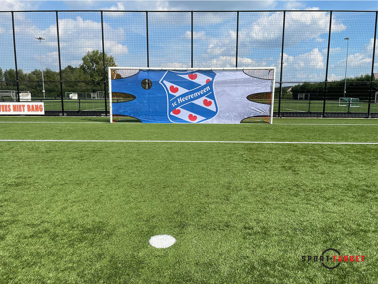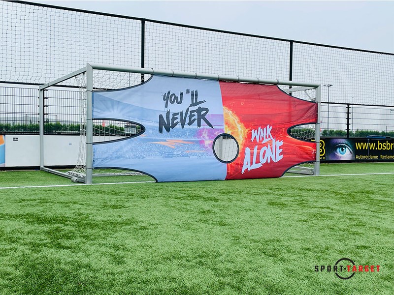 Dit voetbal schietdoek is volledig te personaliseren met een eigen ontwerp, clublogo of sponsoruiting. Je kunt zelf een design aanleveren of het ontwerp laten verzorgen door de designers van Sporttarget.